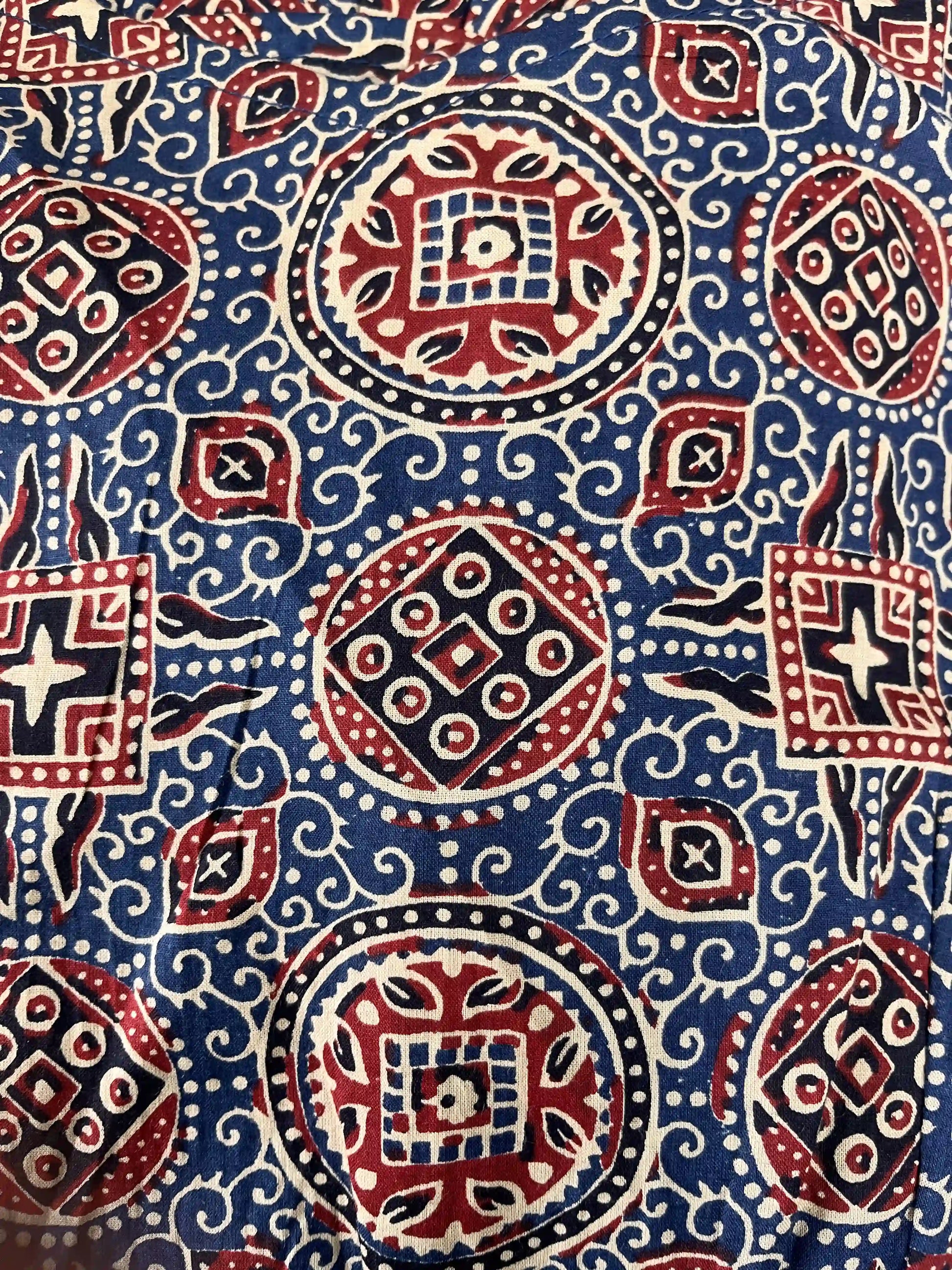 Indigo Ajrak Printed cotton Sleeveless Flared Dress