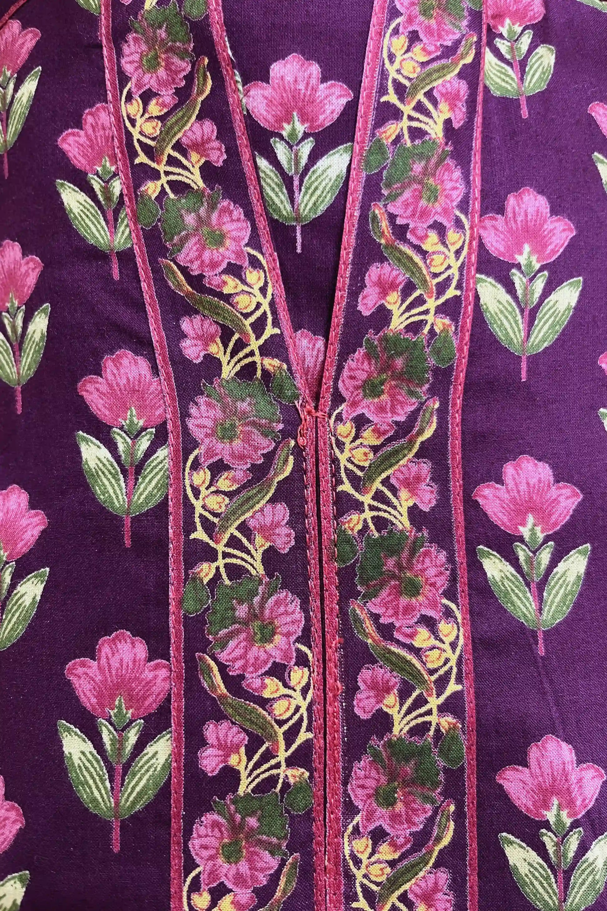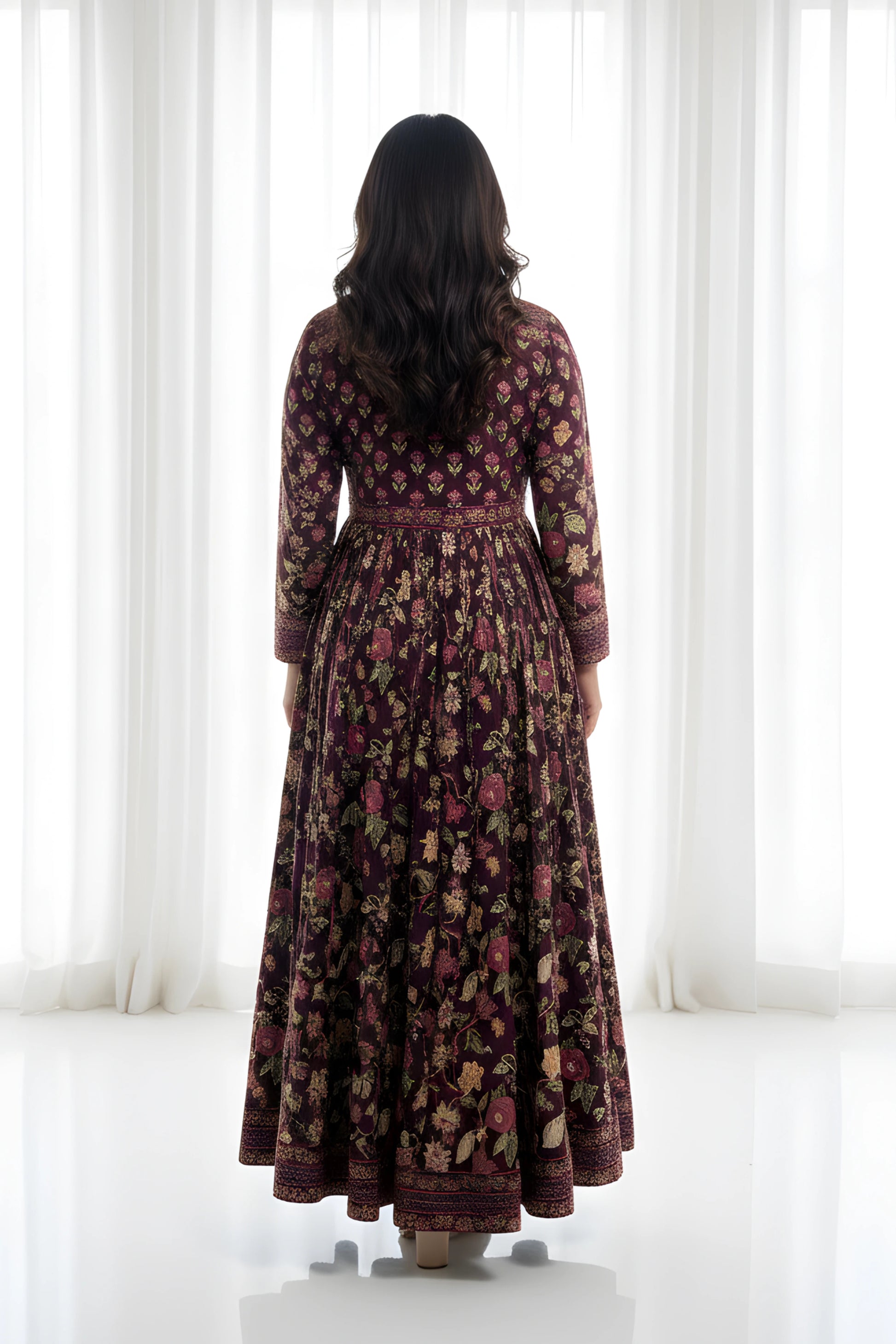 Burgundy Anarkali Cotton Hand Block Printed Ethnic Maxi Dress